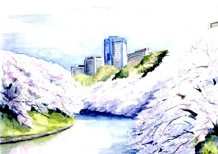 皇居周辺の桜は、やさしく上品な色合いが特徴です。
